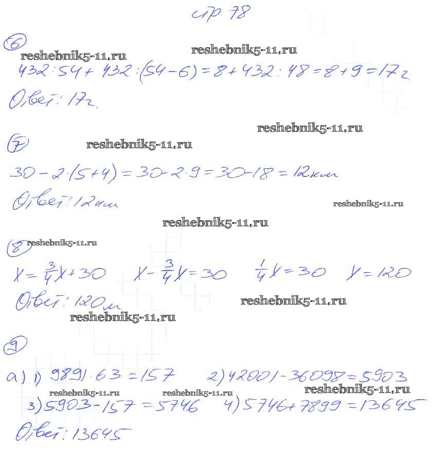 Готовая домашняя работа с ответами по Математике за 5 класс Ерина Рабочая тетрадь УМК Часть 1, 2 Экзамен 2018 ФГОС - Часть 1. Страницы 78