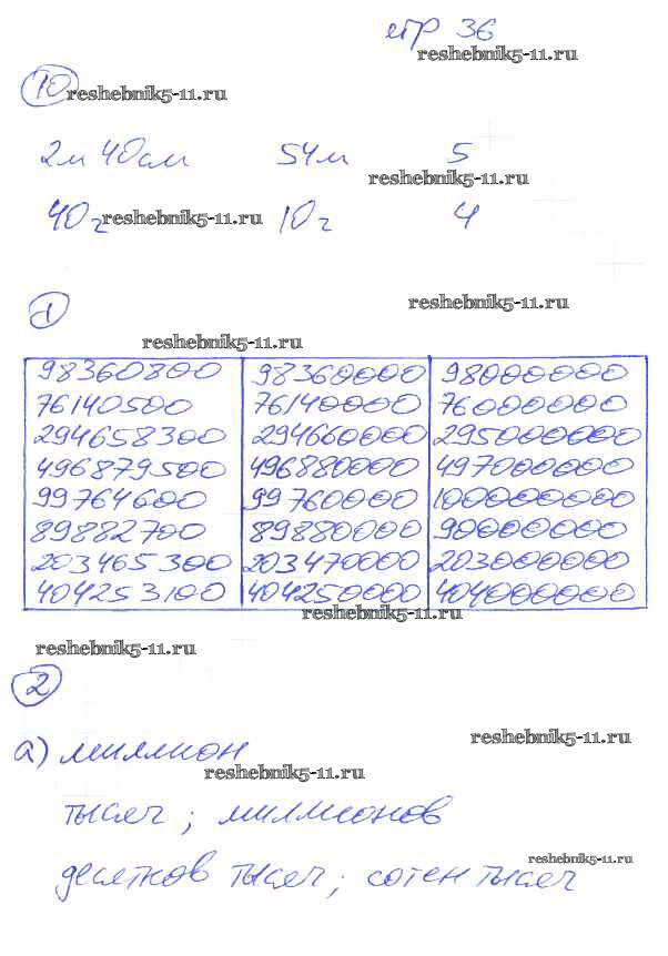 Готовая домашняя работа с ответами по Математике за 5 класс Ерина Рабочая тетрадь УМК Часть 1, 2 Экзамен 2013 ФГОС - Часть 1. Страницы 36