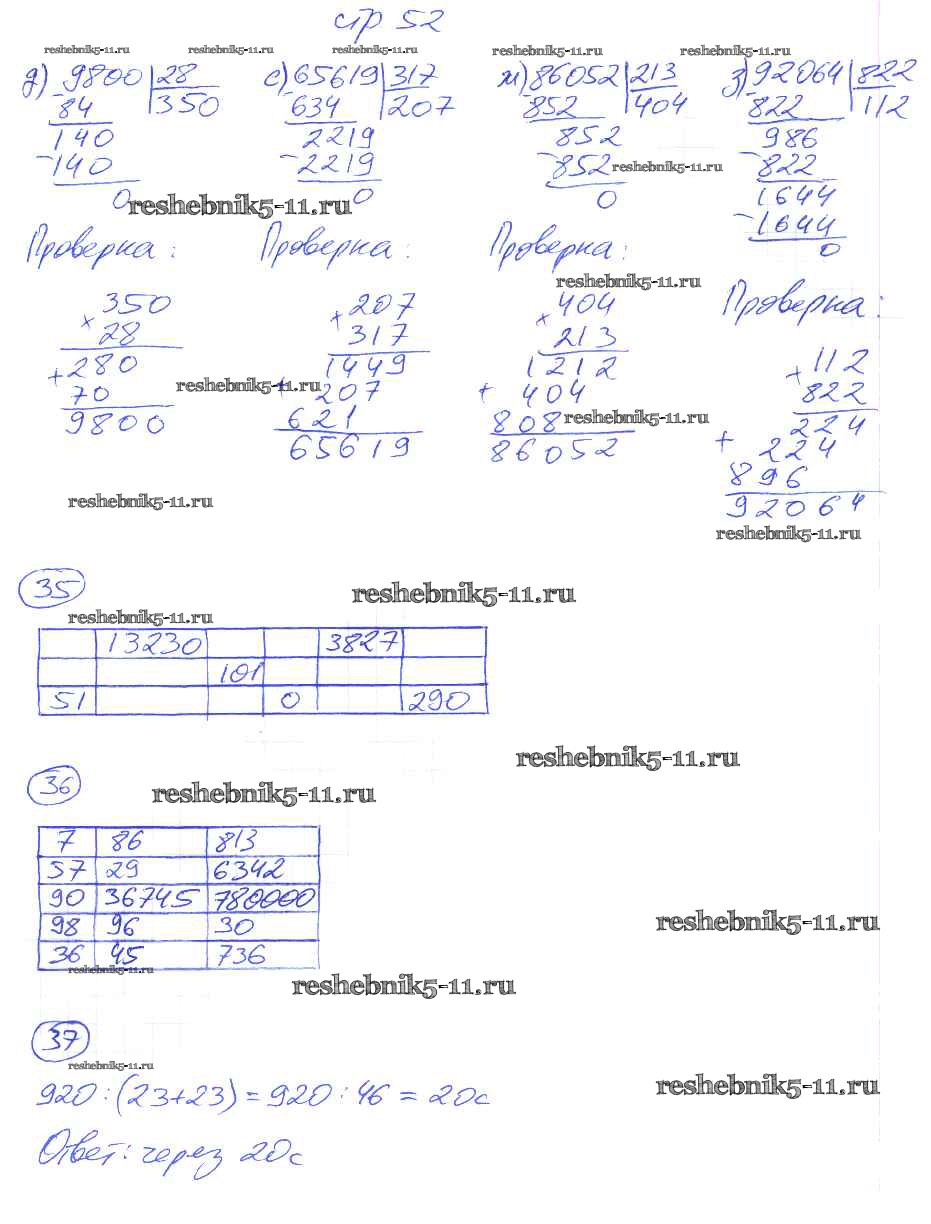 Готовая домашняя работа с ответами по Математике за 5 класс Ерина Рабочая тетрадь УМК Часть 1, 2 Экзамен 2013 ФГОС - Часть 1. Страницы 52