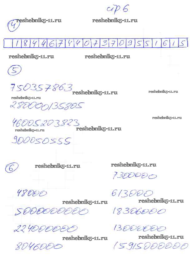 Готовая домашняя работа с ответами по Математике за 5 класс Ерина Рабочая тетрадь УМК Часть 1, 2 Экзамен 2013 ФГОС - Часть 1. Страницы 6