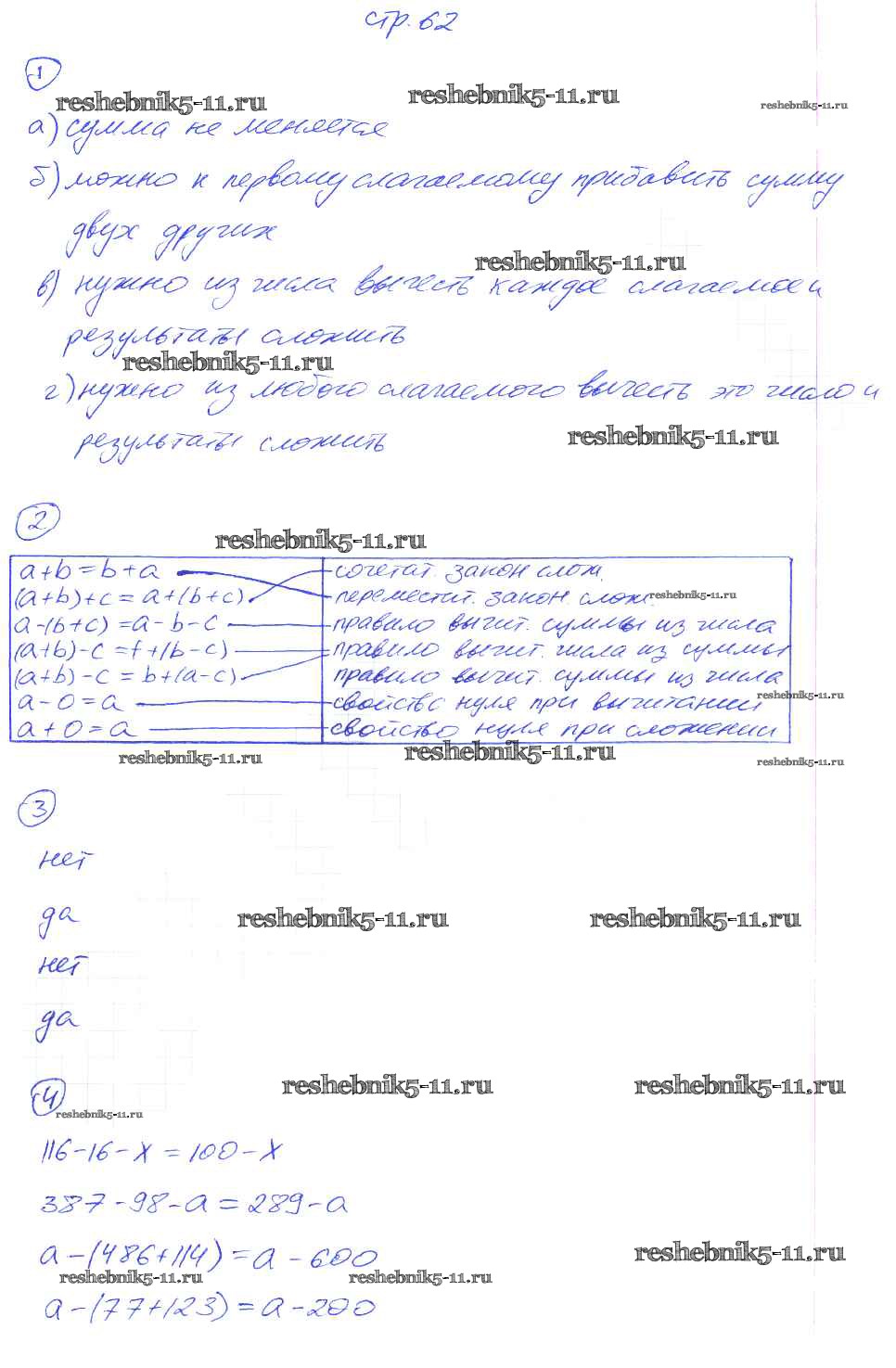 Готовая домашняя работа с ответами по Математике за 5 класс Ерина Рабочая тетрадь УМК Часть 1, 2 Экзамен 2013 ФГОС - Часть 1. Страницы 62