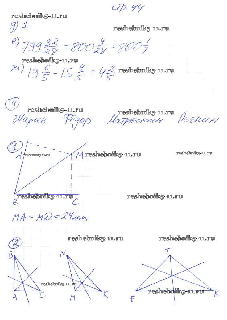 Готовая домашняя работа с ответами по Математике за 5 класс Ерина Рабочая тетрадь УМК Часть 1, 2 Экзамен 2013 ФГОС - Часть 2. Страницы 44