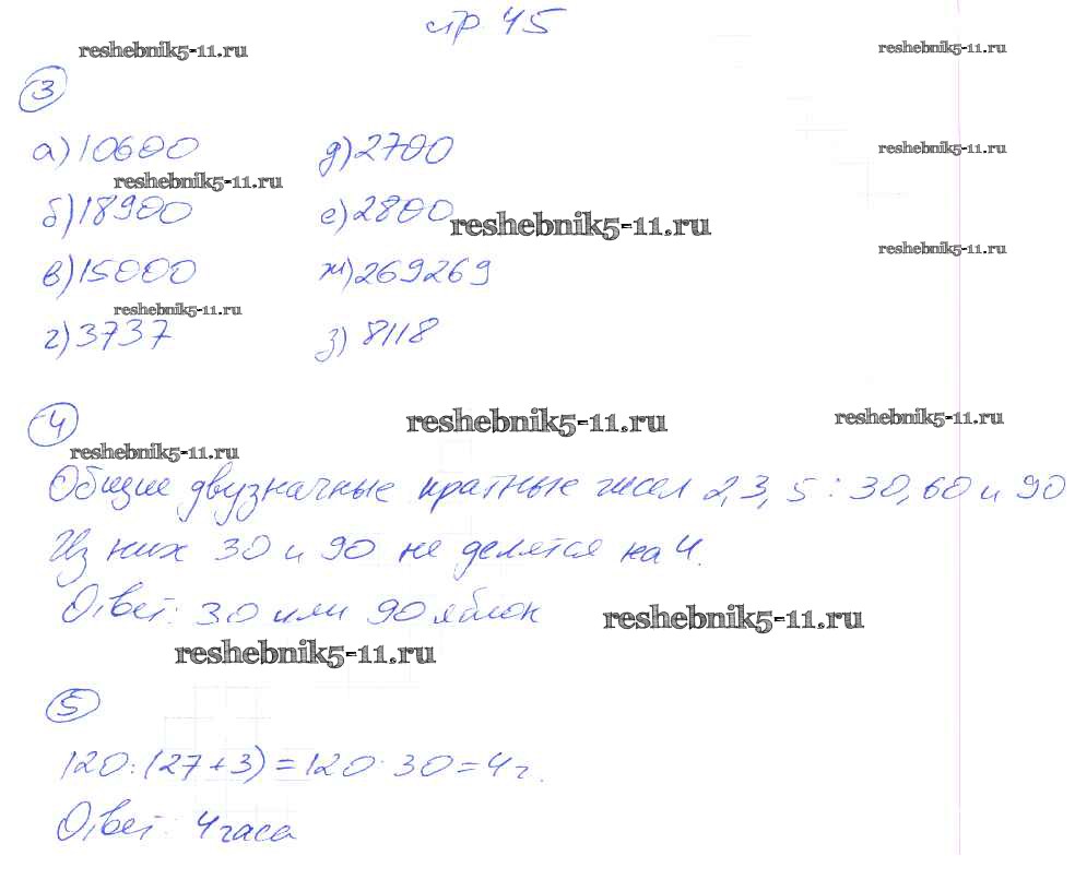 Готовая домашняя работа с ответами по Математике за 5 класс Ерина Рабочая тетрадь УМК Часть 1, 2 Экзамен 2013 ФГОС - Часть 2. Страницы 45