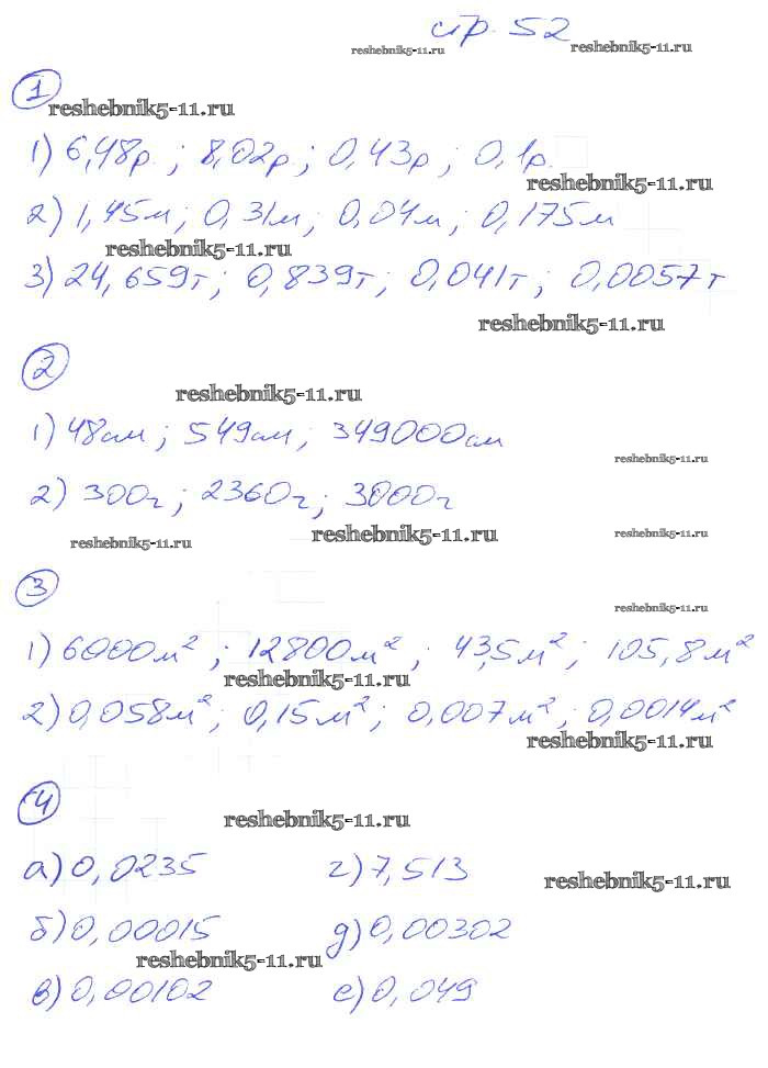 Готовая домашняя работа с ответами по Математике за 5 класс Ерина Рабочая тетрадь УМК Часть 1, 2 Экзамен 2013 ФГОС - Часть 2. Страницы 52