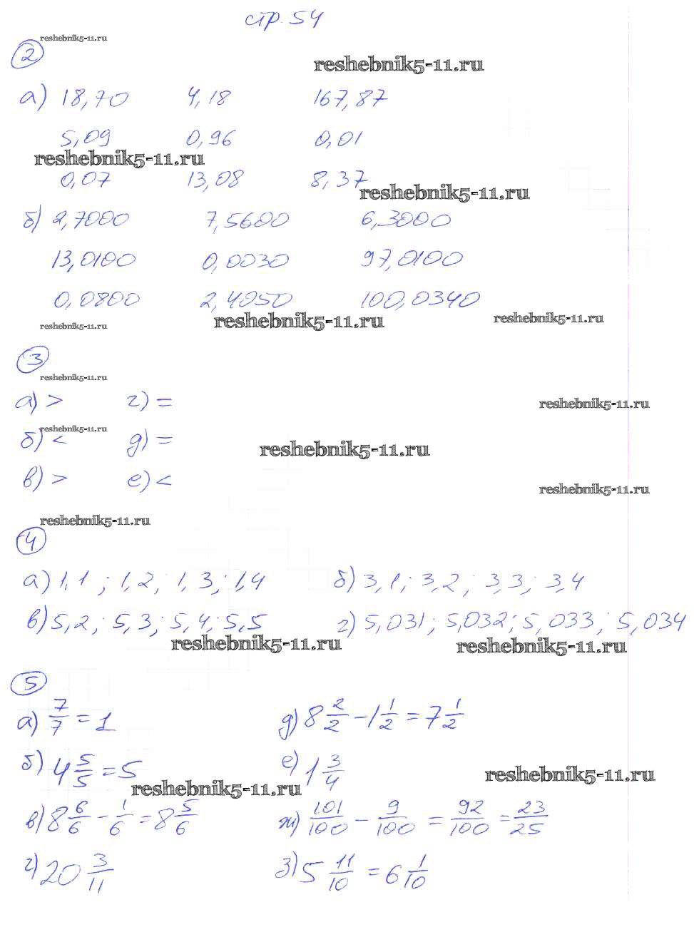 Готовая домашняя работа с ответами по Математике за 5 класс Ерина Рабочая тетрадь УМК Часть 1, 2 Экзамен 2013 ФГОС - Часть 2. Страницы 54