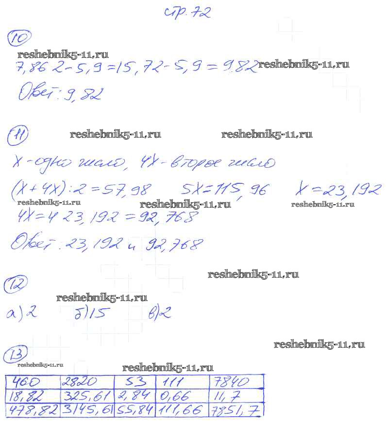 Готовая домашняя работа с ответами по Математике за 5 класс Ерина Рабочая тетрадь УМК Часть 1, 2 Экзамен 2013 ФГОС - Часть 2. Страницы 72