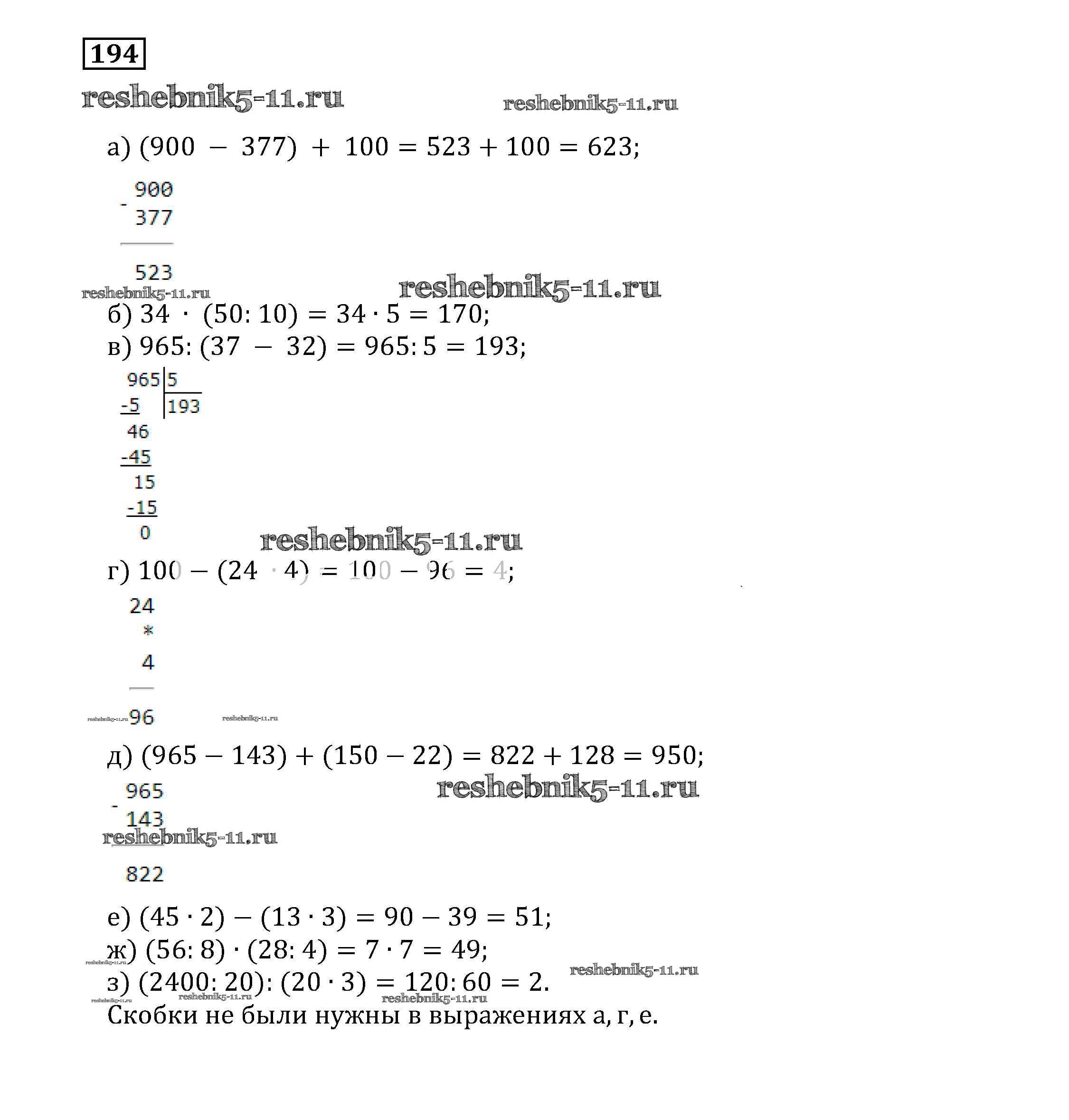 Готовая домашняя работа с ответами по Математике за 5 класс Муравин, Муравина Учебник Дрофа 2016 ФГОС - Упражнения 194