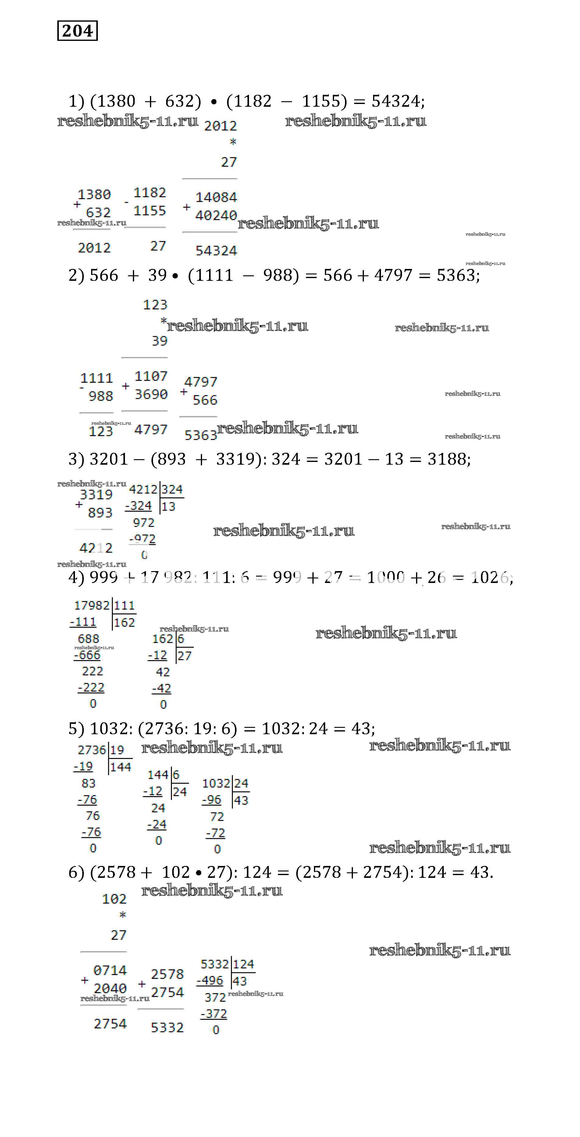 Готовая домашняя работа с ответами по Математике за 5 класс Муравин, Муравина Учебник Дрофа 2016 ФГОС - Упражнения 204