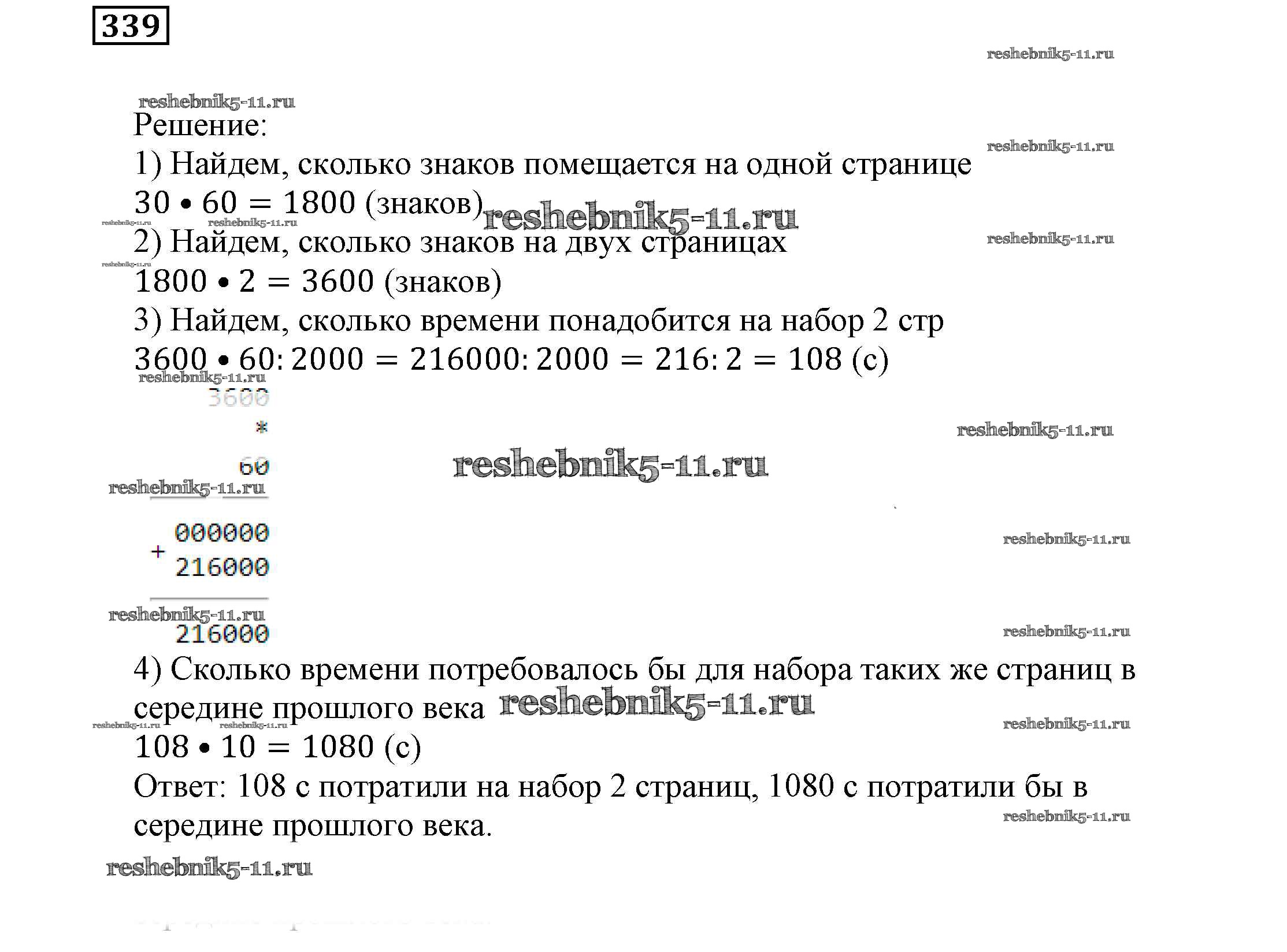 Готовая домашняя работа с ответами по Математике за 5 класс Муравин, Муравина Учебник Дрофа 2016 ФГОС - Упражнения 339