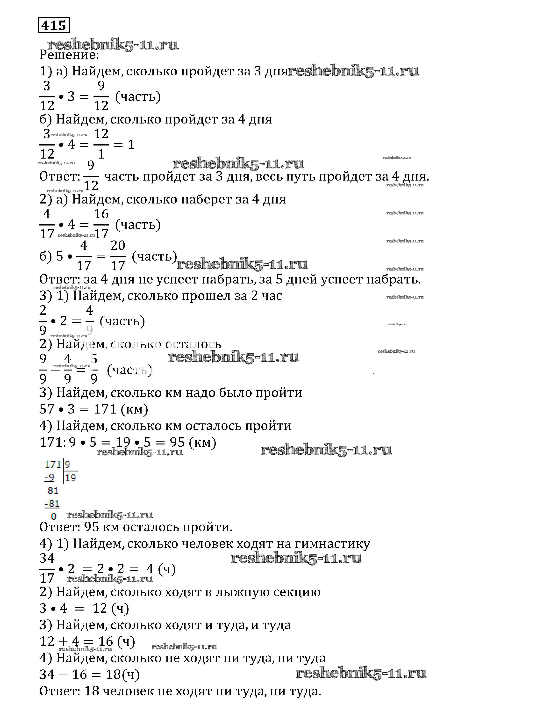 Готовая домашняя работа с ответами по Математике за 5 класс Муравин, Муравина Учебник Дрофа 2016 ФГОС - Упражнения 415