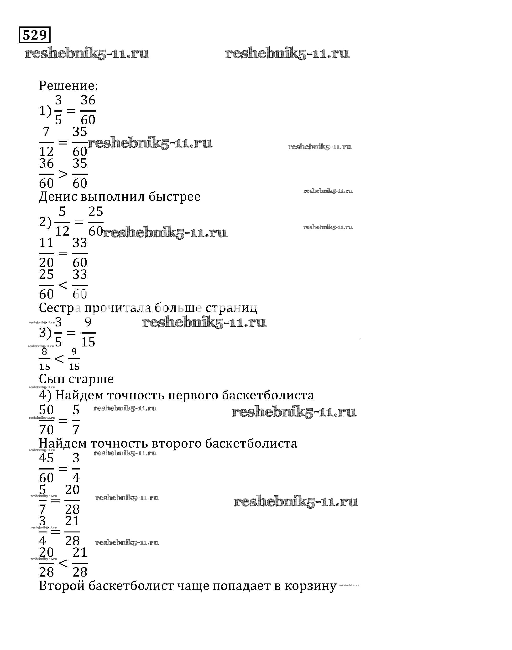 Готовая домашняя работа с ответами по Математике за 5 класс Муравин, Муравина Учебник Дрофа 2016 ФГОС - Упражнения 529