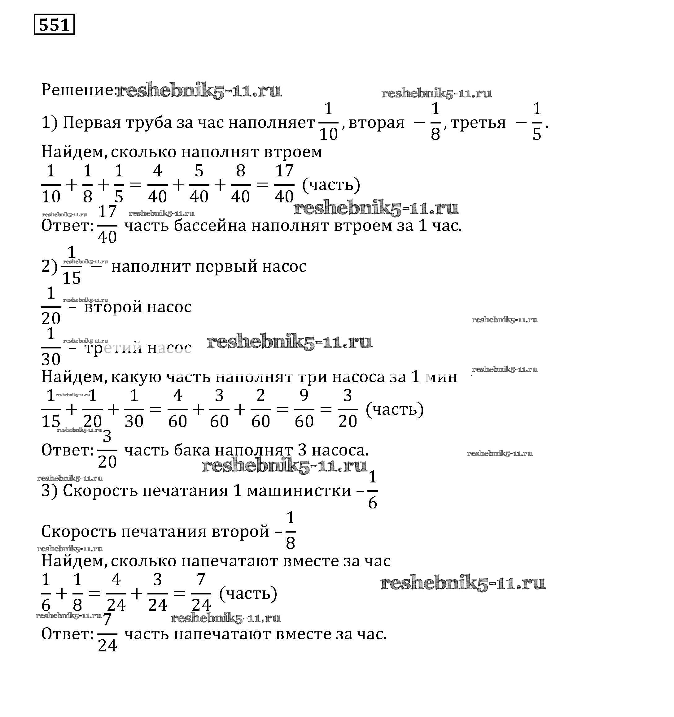 Готовая домашняя работа с ответами по Математике за 5 класс Муравин, Муравина Учебник Дрофа 2016 ФГОС - Упражнения 551