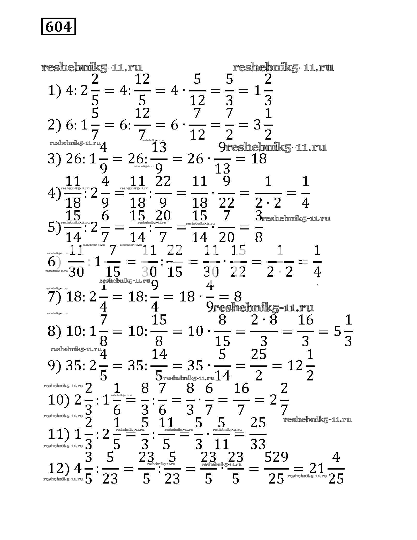 Готовая домашняя работа с ответами по Математике за 5 класс Муравин, Муравина Учебник Дрофа 2016 ФГОС - Упражнения 604