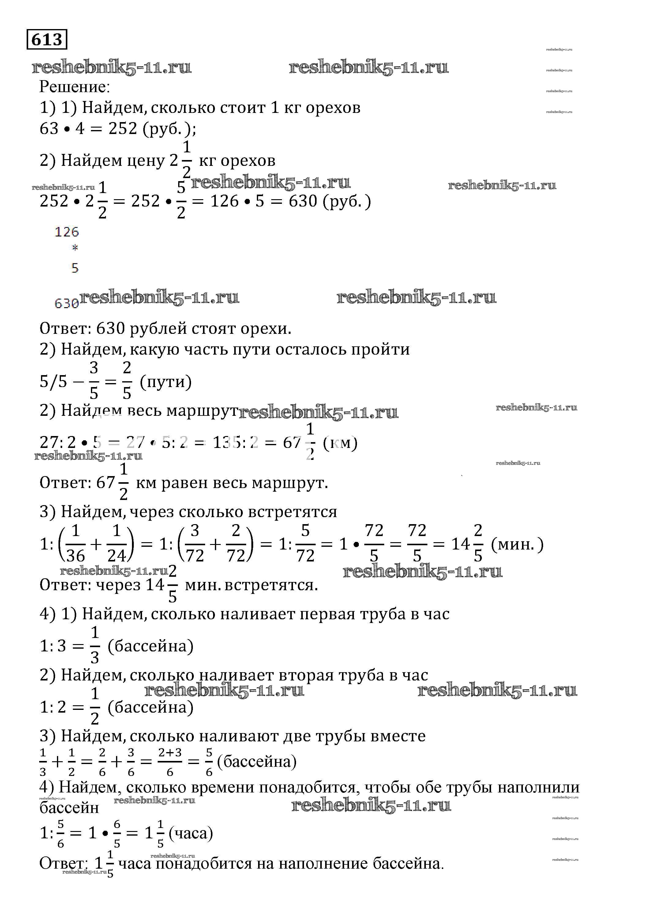 Готовая домашняя работа с ответами по Математике за 5 класс Муравин, Муравина Учебник Дрофа 2016 ФГОС - Упражнения 613