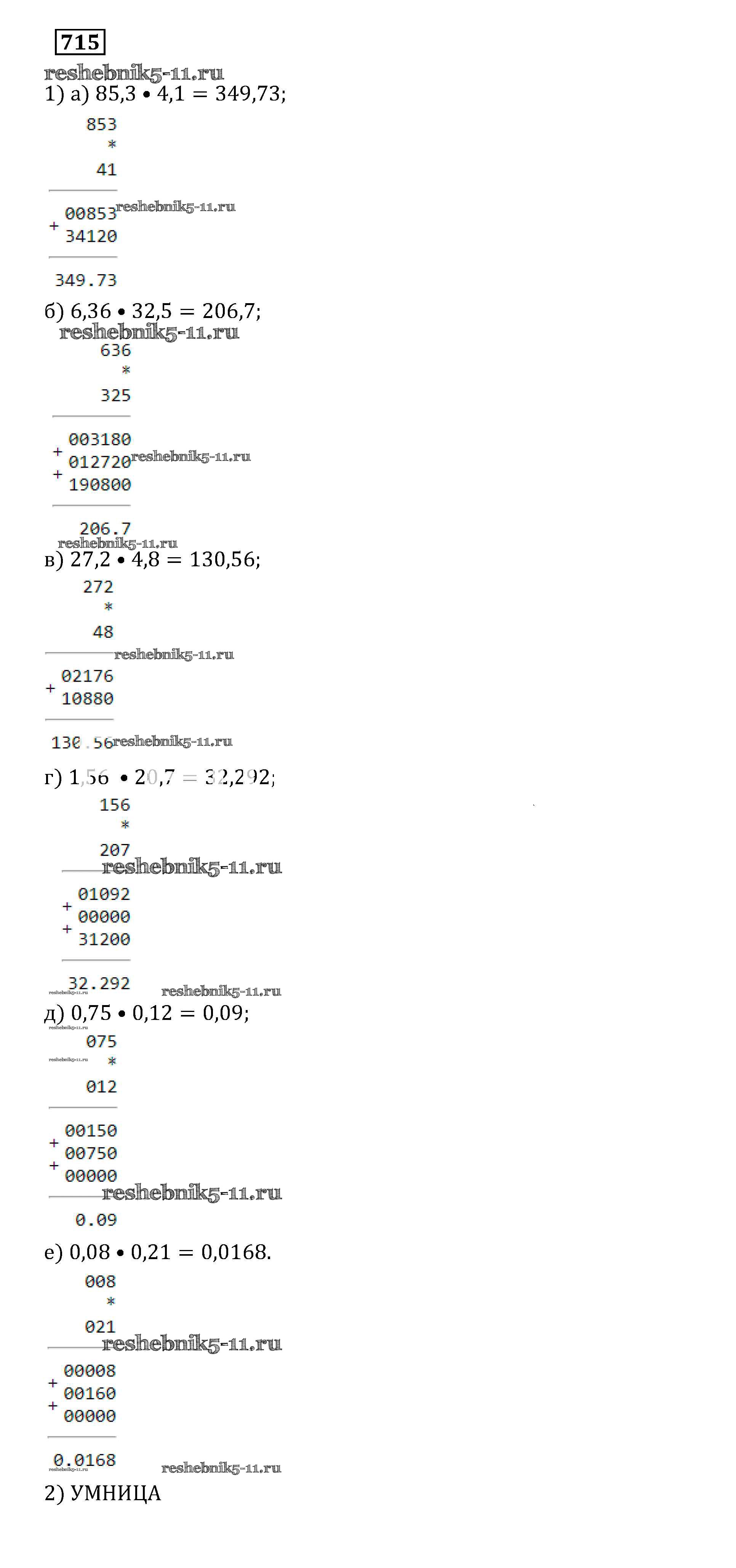 Готовая домашняя работа с ответами по Математике за 5 класс Муравин, Муравина Учебник Дрофа 2016 ФГОС - Упражнения 715