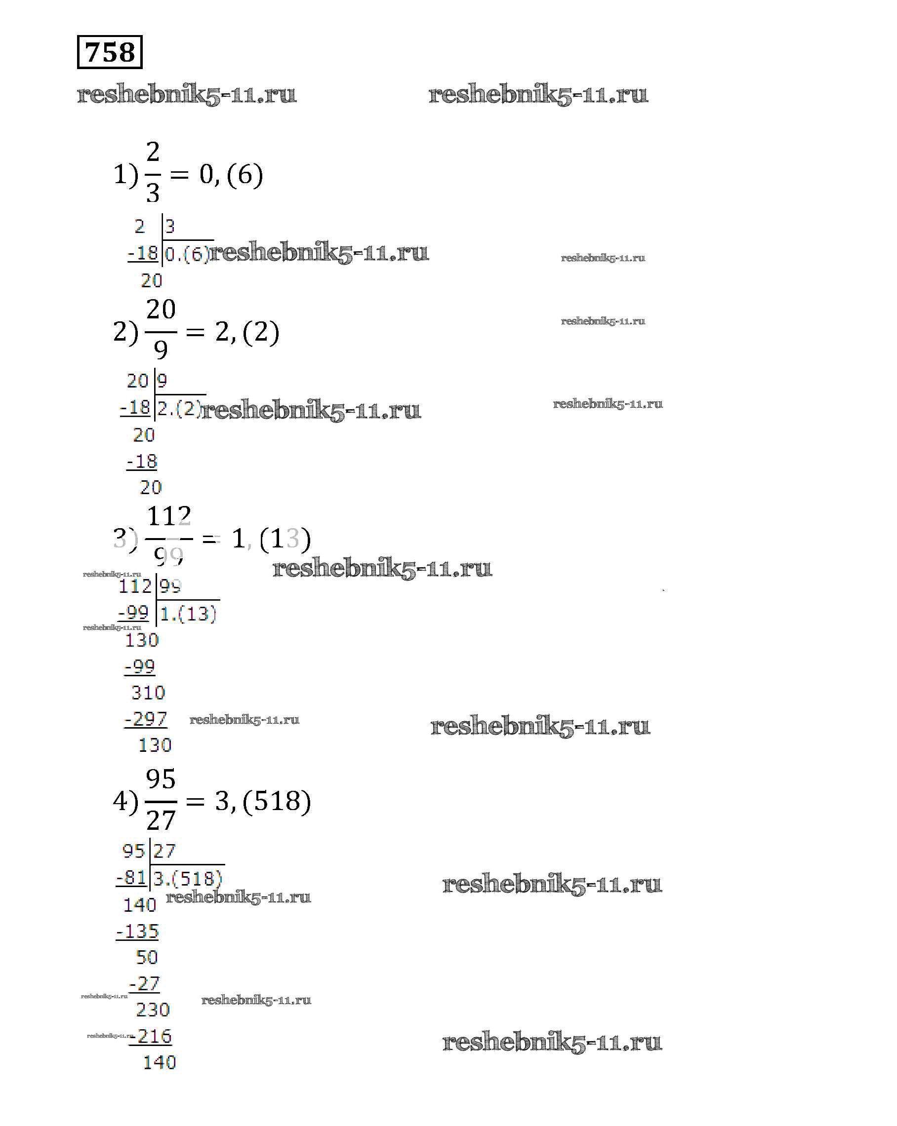 Готовая домашняя работа с ответами по Математике за 5 класс Муравин, Муравина Учебник Дрофа 2016 ФГОС - Упражнения 758