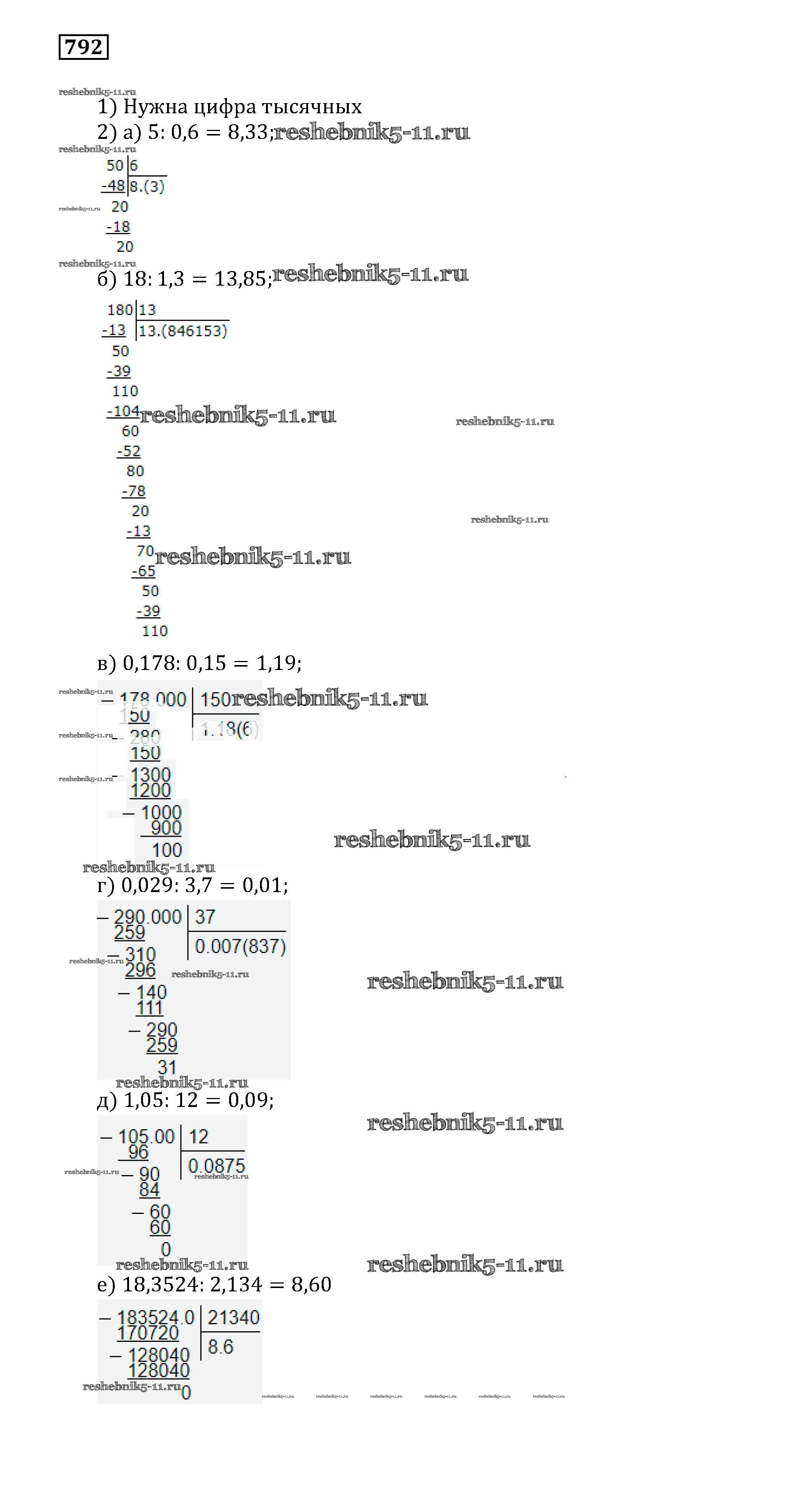Готовая домашняя работа с ответами по Математике за 5 класс Муравин, Муравина Учебник Дрофа 2016 ФГОС - Упражнения 792