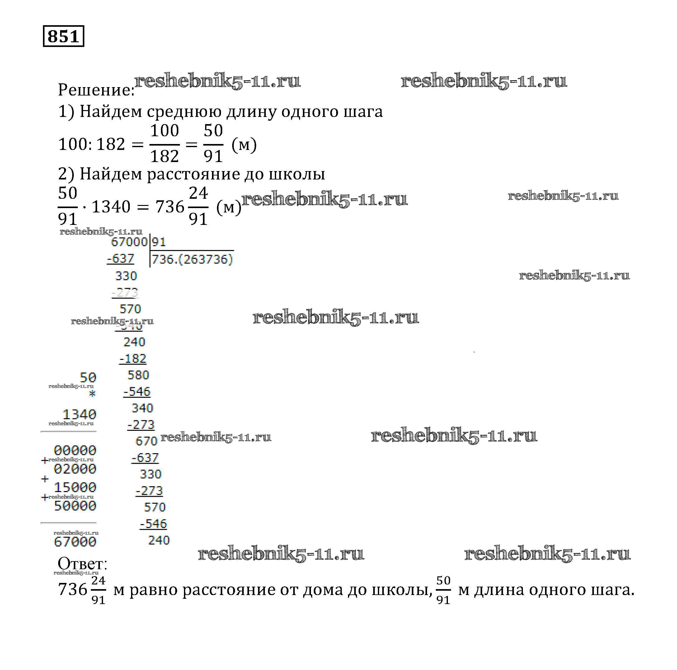 Готовая домашняя работа с ответами по Математике за 5 класс Муравин, Муравина Учебник Дрофа 2016 ФГОС - Упражнения 851