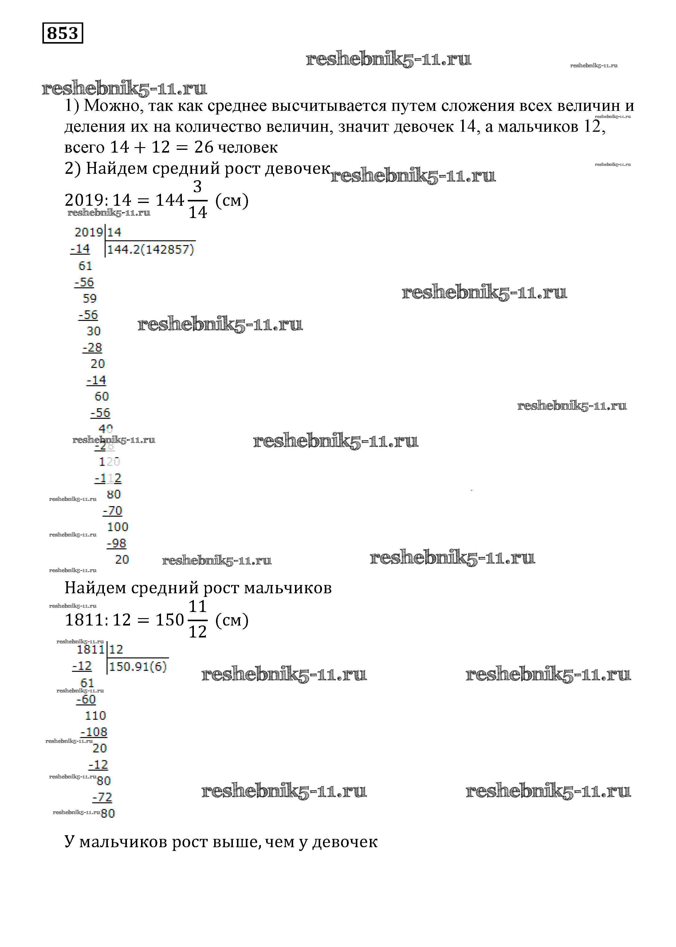 Готовая домашняя работа с ответами по Математике за 5 класс Муравин, Муравина Учебник Дрофа 2016 ФГОС - Упражнения 853