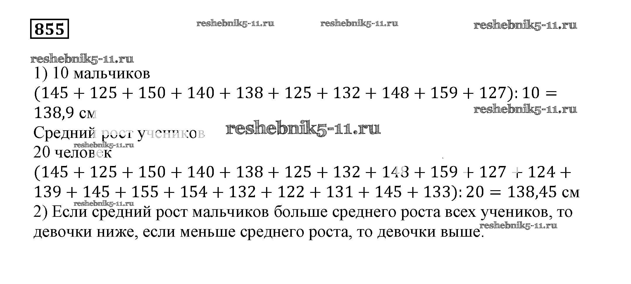 Готовая домашняя работа с ответами по Математике за 5 класс Муравин, Муравина Учебник Дрофа 2016 ФГОС - Упражнения 855