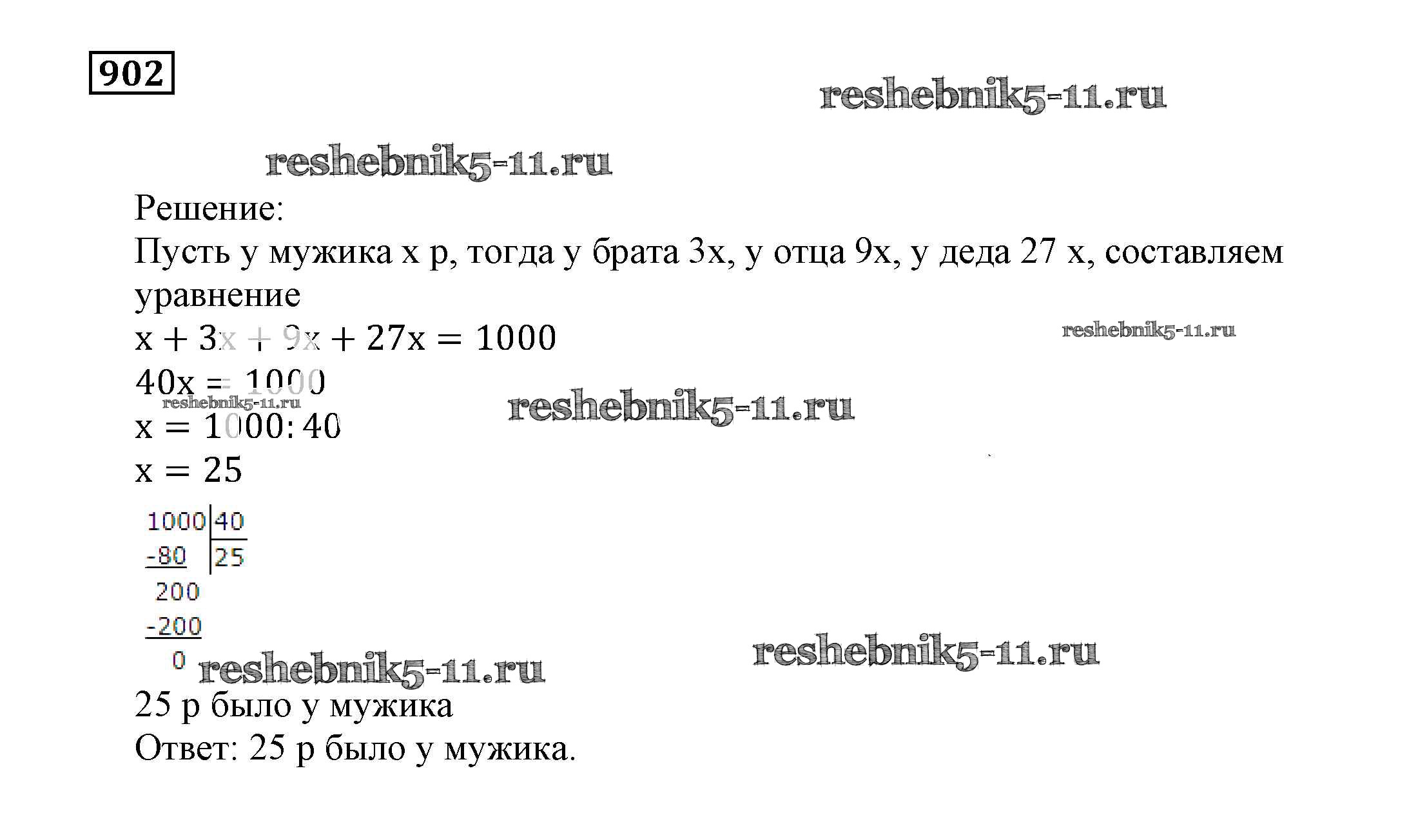 Готовая домашняя работа с ответами по Математике за 5 класс Муравин, Муравина Учебник Дрофа 2016 ФГОС - Упражнения 902