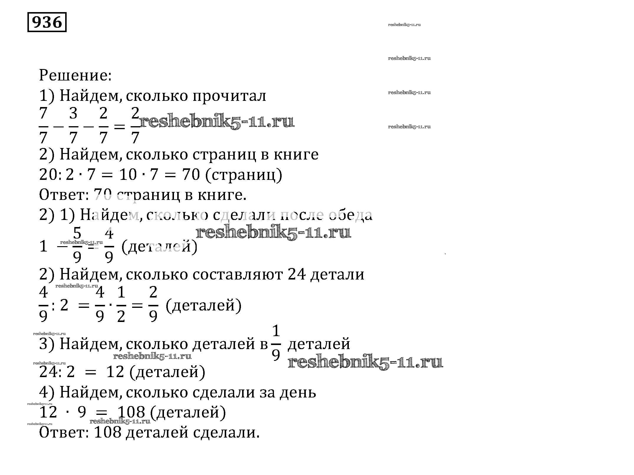 Готовая домашняя работа с ответами по Математике за 5 класс Муравин, Муравина Учебник Дрофа 2016 ФГОС - Упражнения 936