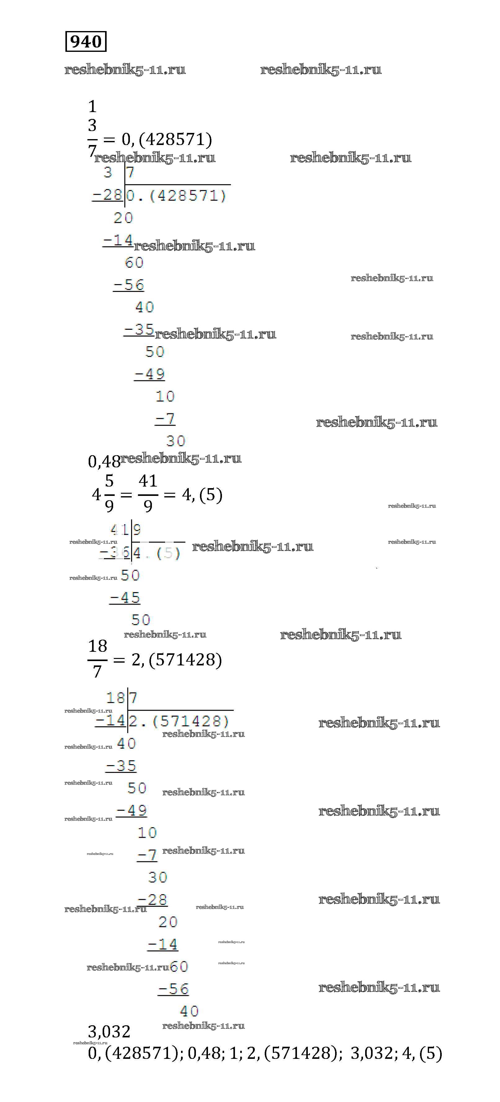 Готовая домашняя работа с ответами по Математике за 5 класс Муравин, Муравина Учебник Дрофа 2016 ФГОС - Упражнения 940
