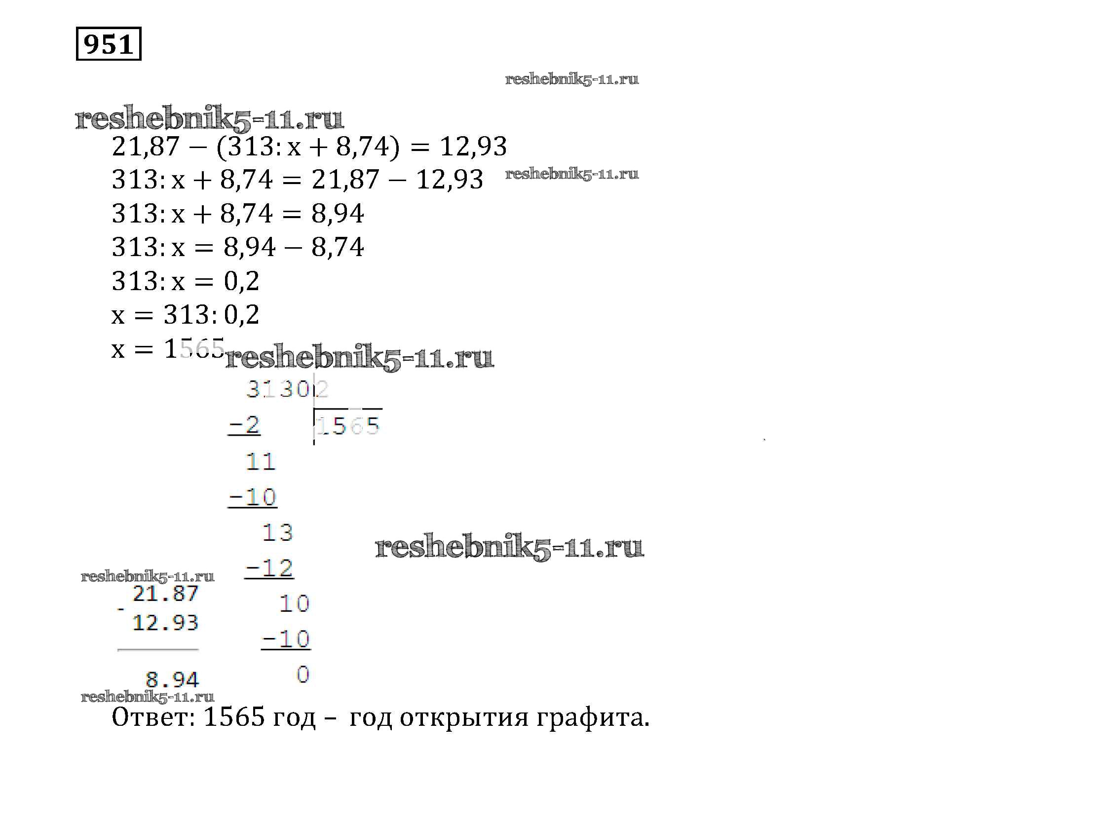 Готовая домашняя работа с ответами по Математике за 5 класс Муравин, Муравина Учебник Дрофа 2016 ФГОС - Упражнения 951