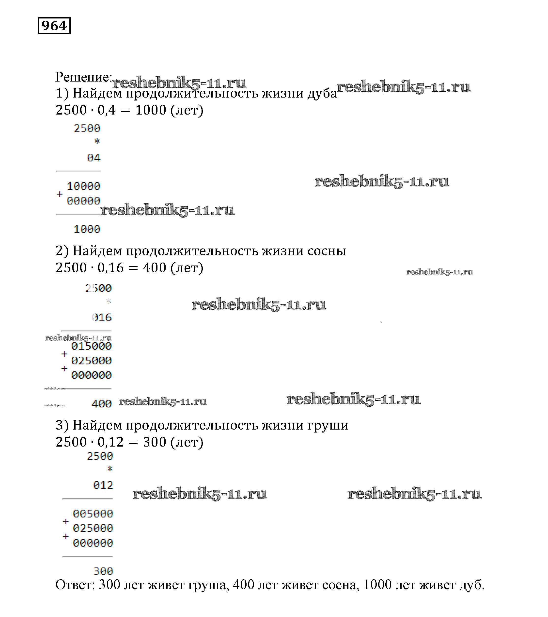 Готовая домашняя работа с ответами по Математике за 5 класс Муравин, Муравина Учебник Дрофа 2016 ФГОС - Упражнения 964