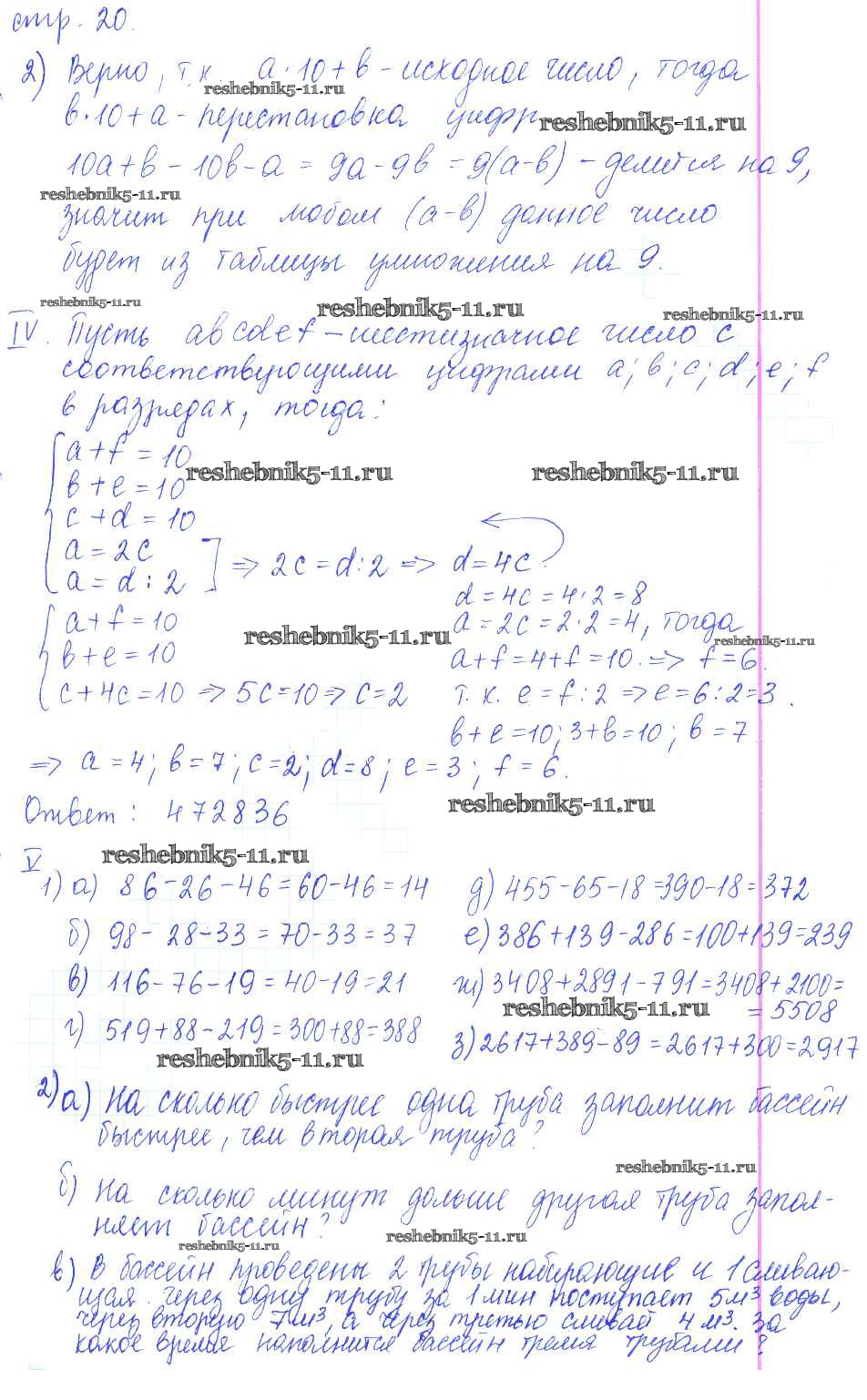 Готовая домашняя работа с ответами по Математике за 5 класс Ерина Рабочая тетрадь УМК Часть 1, 2 Экзамен 2016 ФГОС - Часть 1. Страницы 20