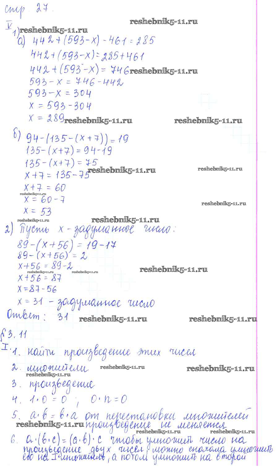 Готовая домашняя работа с ответами по Математике за 5 класс Ерина Рабочая тетрадь УМК Часть 1, 2 Экзамен 2016 ФГОС - Часть 1. Страницы 27