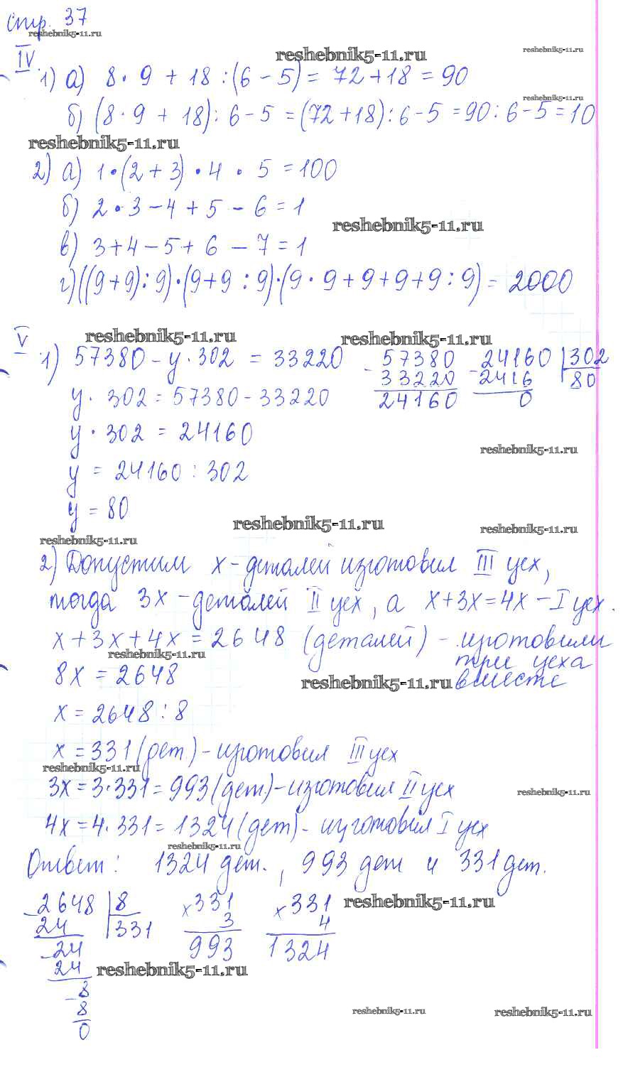 Готовая домашняя работа с ответами по Математике за 5 класс Ерина Рабочая тетрадь УМК Часть 1, 2 Экзамен 2016 ФГОС - Часть 1. Страницы 37
