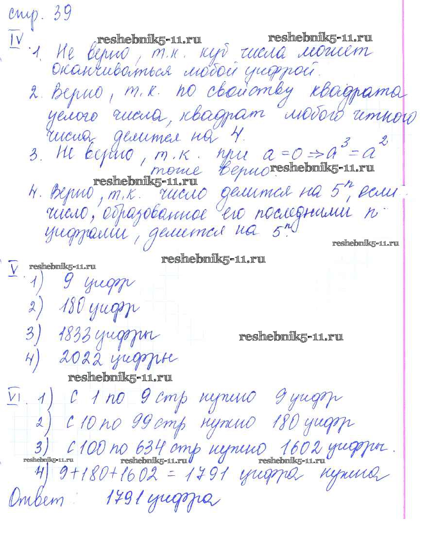 Готовая домашняя работа с ответами по Математике за 5 класс Ерина Рабочая тетрадь УМК Часть 1, 2 Экзамен 2016 ФГОС - Часть 1. Страницы 39