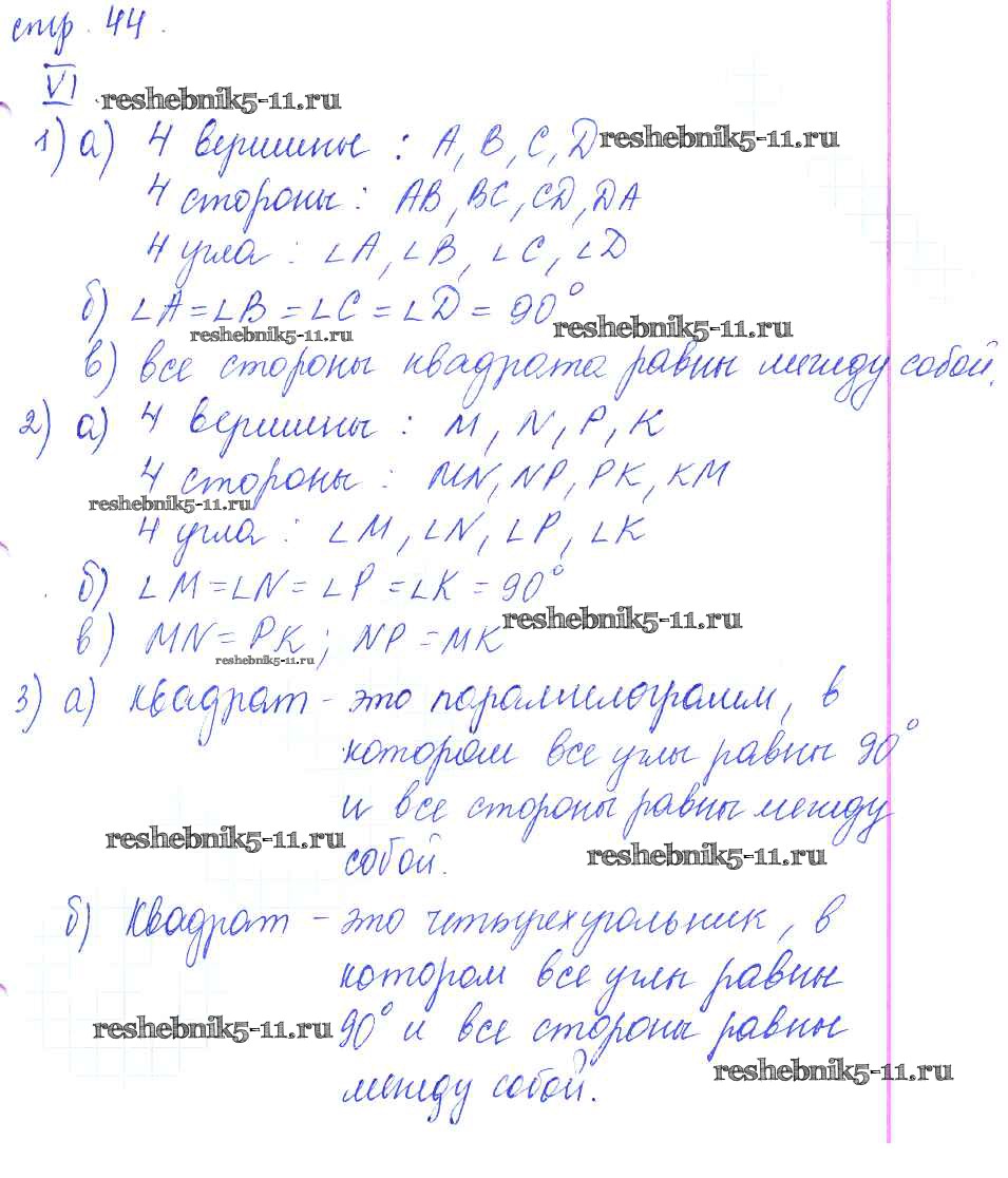 Готовая домашняя работа с ответами по Математике за 5 класс Ерина Рабочая тетрадь УМК Часть 1, 2 Экзамен 2016 ФГОС - Часть 1. Страницы 44