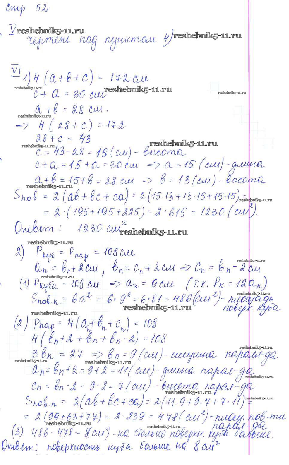 Готовая домашняя работа с ответами по Математике за 5 класс Ерина Рабочая тетрадь УМК Часть 1, 2 Экзамен 2016 ФГОС - Часть 1. Страницы 52