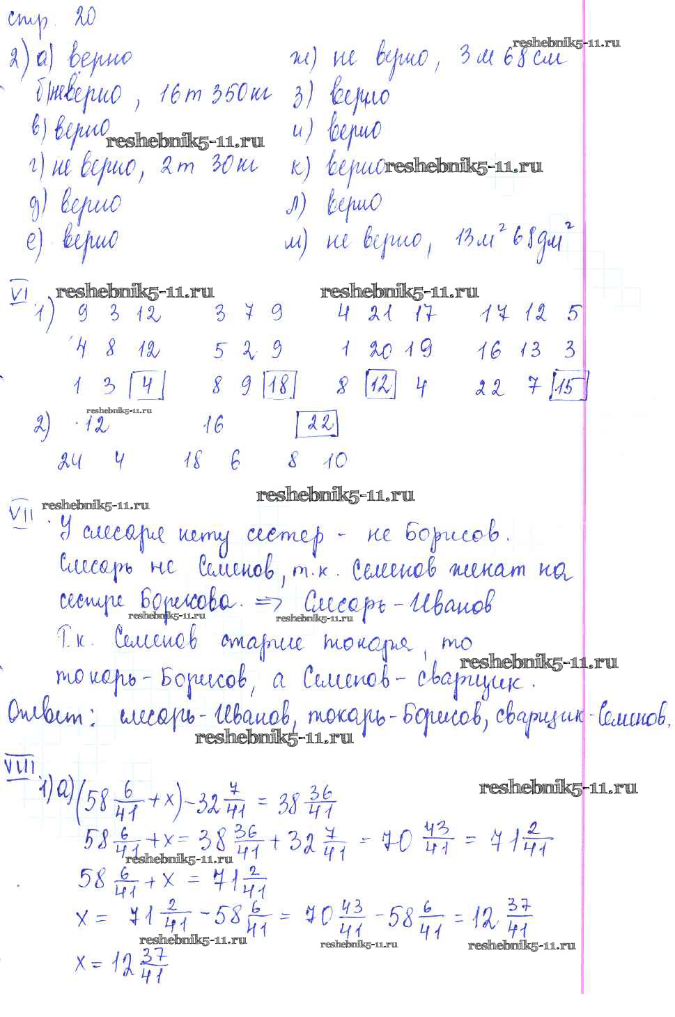 Готовая домашняя работа с ответами по Математике за 5 класс Ерина Рабочая тетрадь УМК Часть 1, 2 Экзамен 2016 ФГОС - Часть 2. Страницы 20