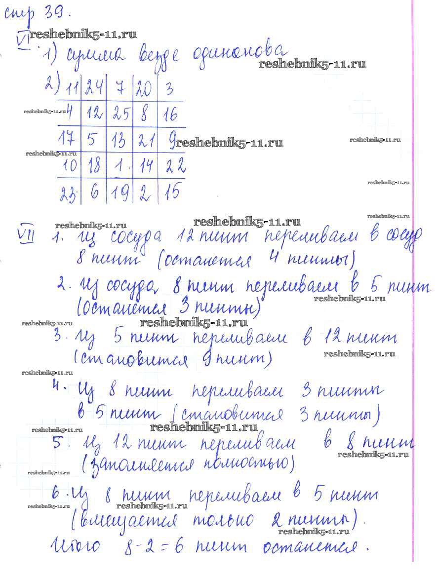 Готовая домашняя работа с ответами по Математике за 5 класс Ерина Рабочая тетрадь УМК Часть 1, 2 Экзамен 2016 ФГОС - Часть 2. Страницы 39