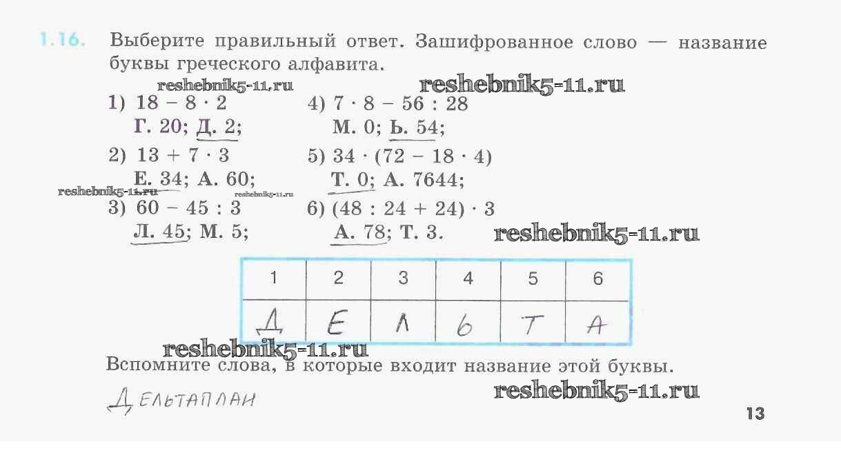 Готовая домашняя работа с ответами по Математике за 5 класс Зубарева Рабочая тетрадь УМК Часть 1, 2 Мнемозина 2014 ФГОС - §1. Десятичная система счисления 16