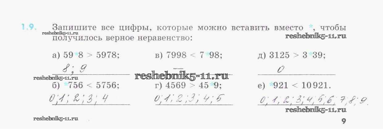 Готовая домашняя работа с ответами по Математике за 5 класс Зубарева Рабочая тетрадь УМК Часть 1, 2 Мнемозина 2014 ФГОС - §1. Десятичная система счисления 9