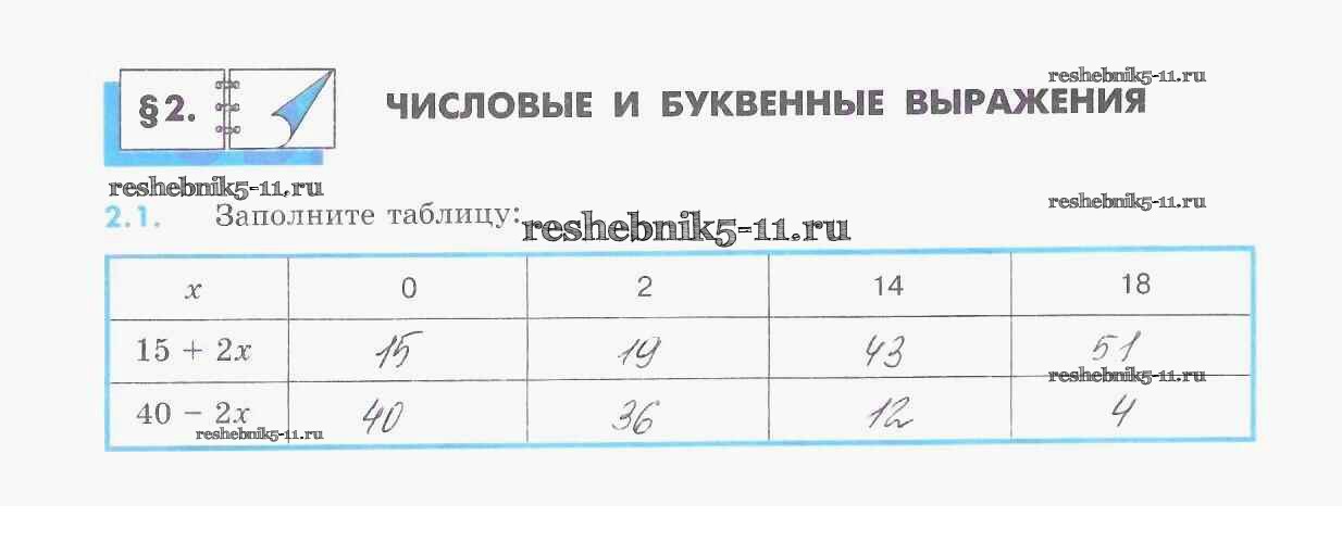Готовая домашняя работа с ответами по Математике за 5 класс Зубарева Рабочая тетрадь УМК Часть 1, 2 Мнемозина 2014 ФГОС - §2. Числовые и буквенные выражения 1