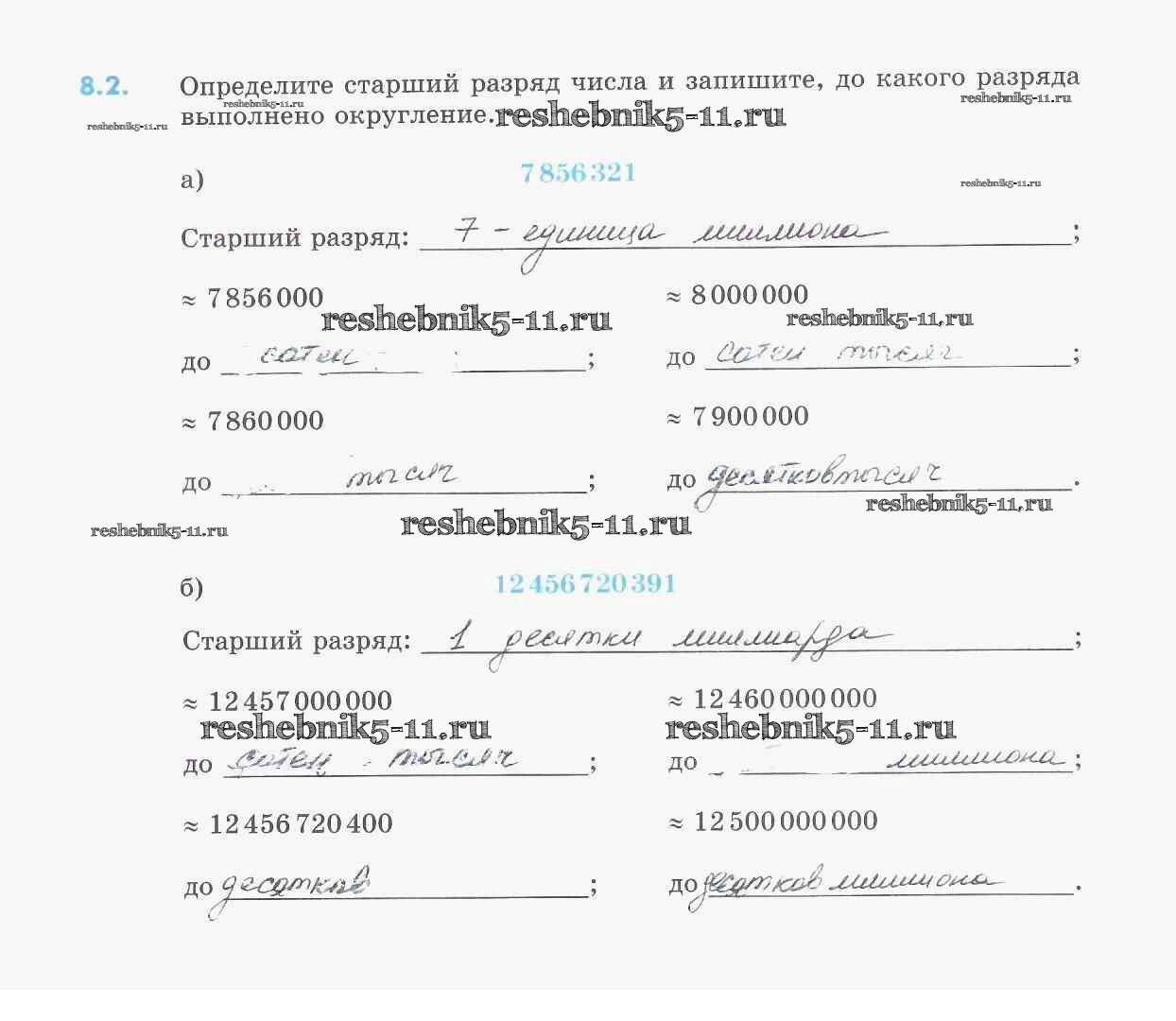 Готовая домашняя работа с ответами по Математике за 5 класс Зубарева Рабочая тетрадь УМК Часть 1, 2 Мнемозина 2014 ФГОС - §8. Округление натуральных чисел 2