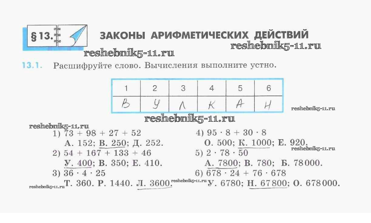 Готовая домашняя работа с ответами по Математике за 5 класс Зубарева Рабочая тетрадь УМК Часть 1, 2 Мнемозина 2014 ФГОС - §13. Законы арифметических действий 1