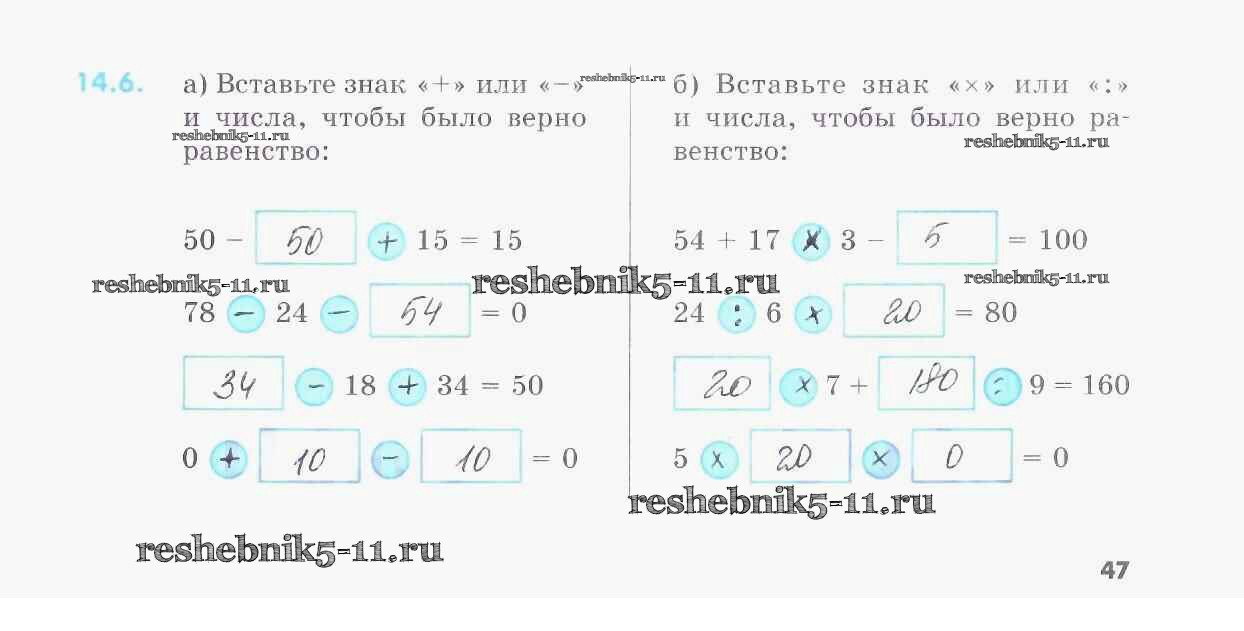 Готовая домашняя работа с ответами по Математике за 5 класс Зубарева Рабочая тетрадь УМК Часть 1, 2 Мнемозина 2014 ФГОС - §14. Уравнения 6