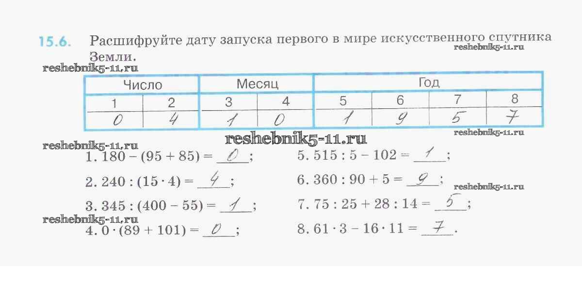 Готовая домашняя работа с ответами по Математике за 5 класс Зубарева Рабочая тетрадь УМК Часть 1, 2 Мнемозина 2014 ФГОС - §15-17. Упрощение выражений. Математический язык. Математическая модель 6