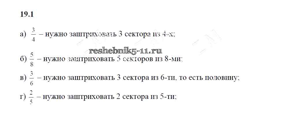Готовая домашняя работа с ответами по Математике за 5 класс Зубарева Рабочая тетрадь УМК Часть 1, 2 Мнемозина 2014 ФГОС - §19. Обыкновенные дроби 1