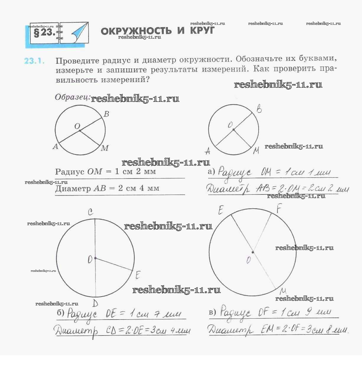 Готовая домашняя работа с ответами по Математике за 5 класс Зубарева Рабочая тетрадь УМК Часть 1, 2 Мнемозина 2014 ФГОС - §23. Окружность и круг 1