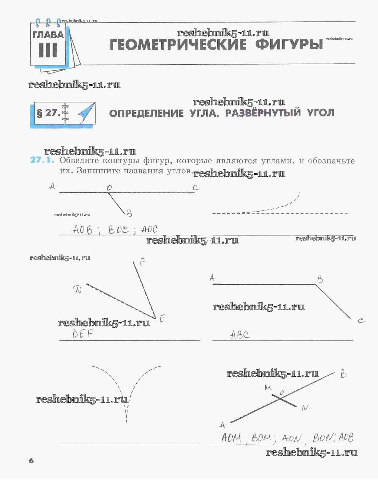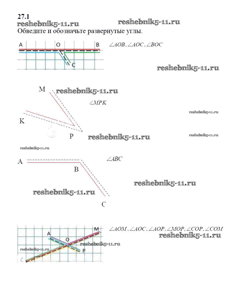 Готовая домашняя работа с ответами по Математике за 5 класс Зубарева Рабочая тетрадь УМК Часть 1, 2 Мнемозина 2014 ФГОС - §27. Определение угла. Развёрнутый угол 1