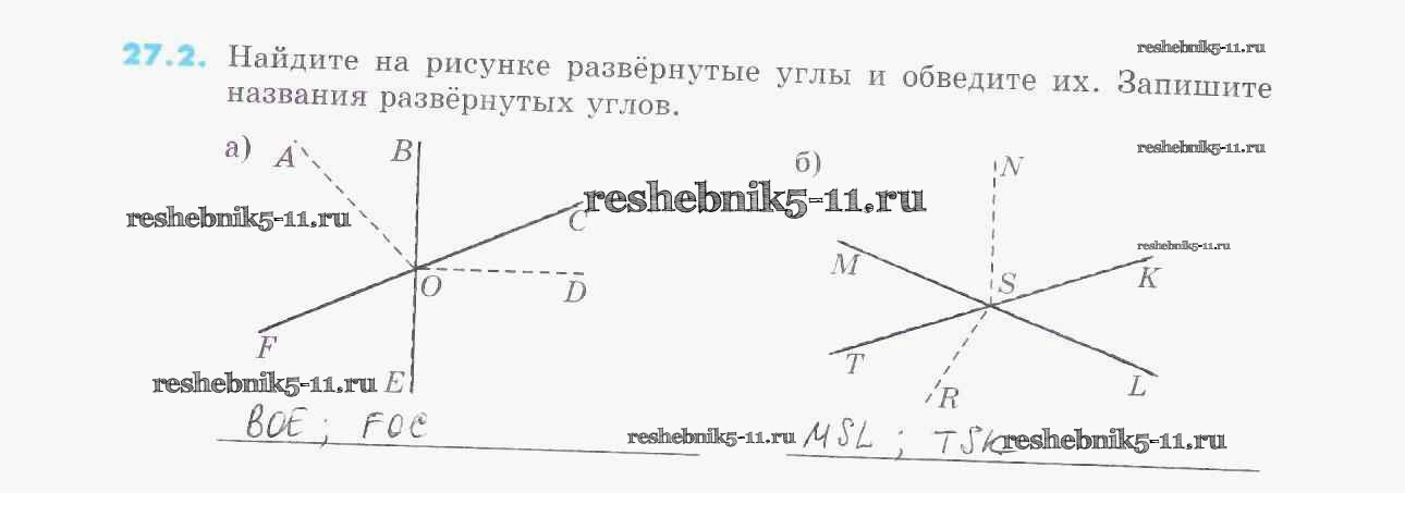 Готовая домашняя работа с ответами по Математике за 5 класс Зубарева Рабочая тетрадь УМК Часть 1, 2 Мнемозина 2014 ФГОС - §27. Определение угла. Развёрнутый угол 2