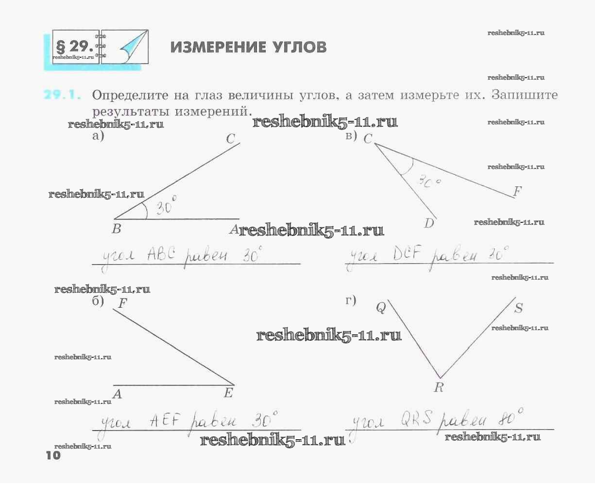 Готовая домашняя работа с ответами по Математике за 5 класс Зубарева Рабочая тетрадь УМК Часть 1, 2 Мнемозина 2014 ФГОС - §29. Измерение углов 1