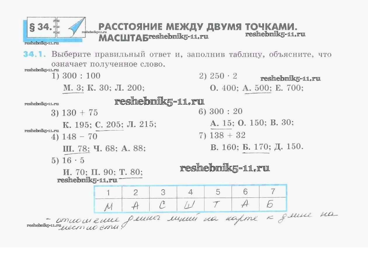 Готовая домашняя работа с ответами по Математике за 5 класс Зубарева Рабочая тетрадь УМК Часть 1, 2 Мнемозина 2014 ФГОС - §34. Расстояние между двумя точками. Масштаб 1